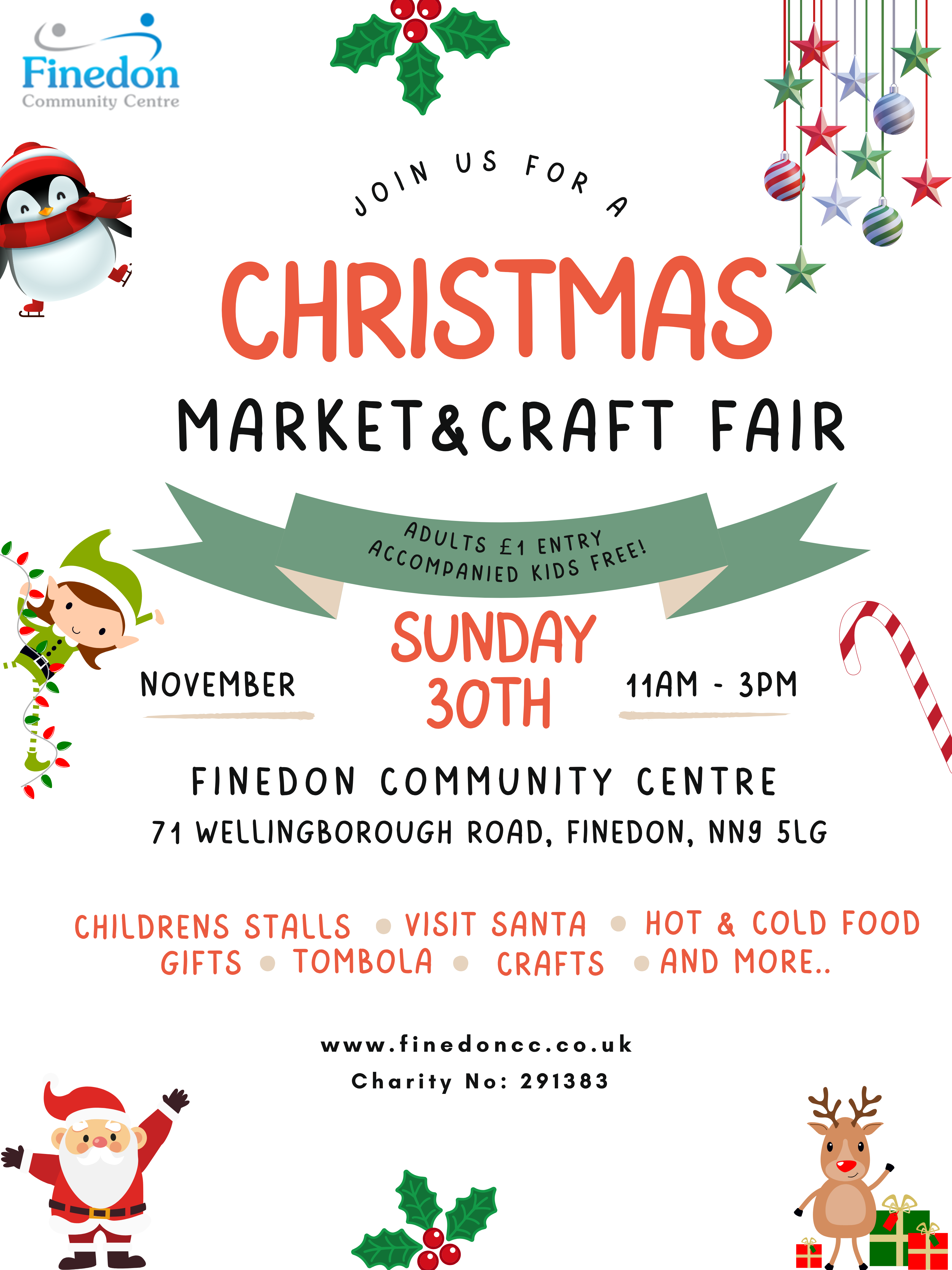 Finedon Christmas Market & Craft Fair Sunday 30th November | 11am – 3pm Finedon Community Centre, 71 Wellingborough Road, Finedon, NN9 5LG...