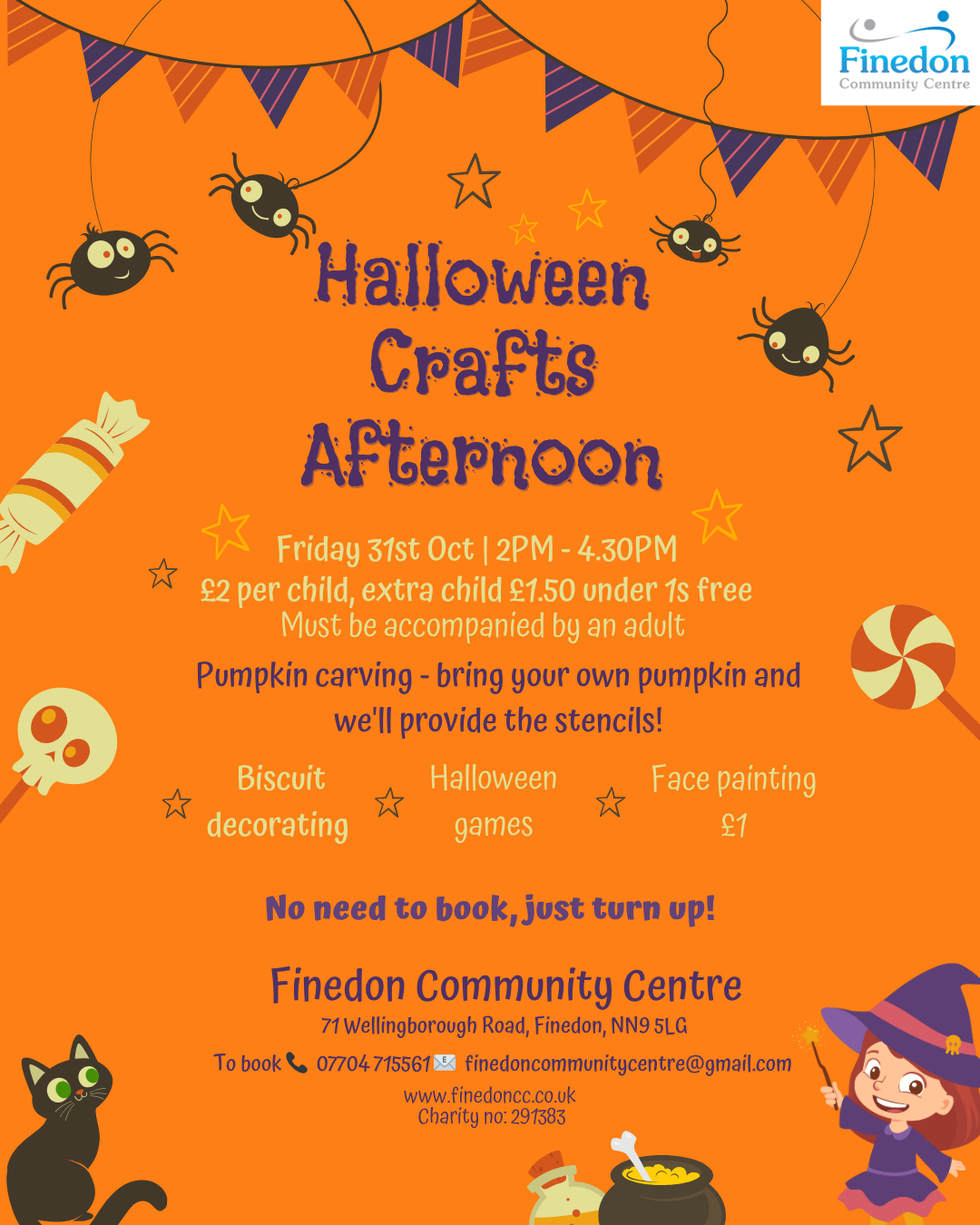 Halloween Crafts Afternoon Friday 31st October | 2pm – 4.30pm Finedon Community Centre, 71 Wellingborough Road, Finedon, NN9 5LG Get re...